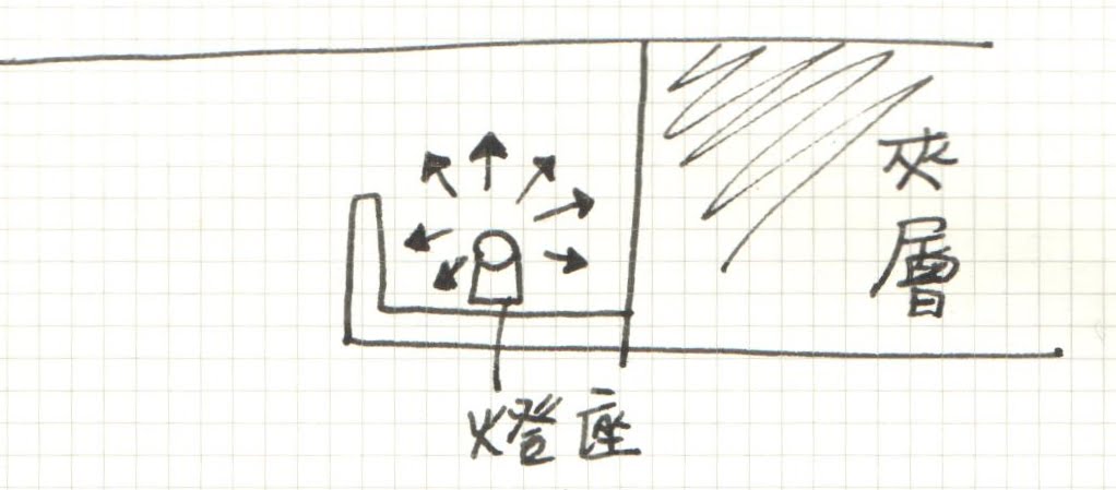 我還沒有畫出來的部分是其實溝槽和天花板夾層中間的版子不是做滿的,所以還有一部份光完全是照進天花板夾層裡。(是在幫老鼠照路嗎?)